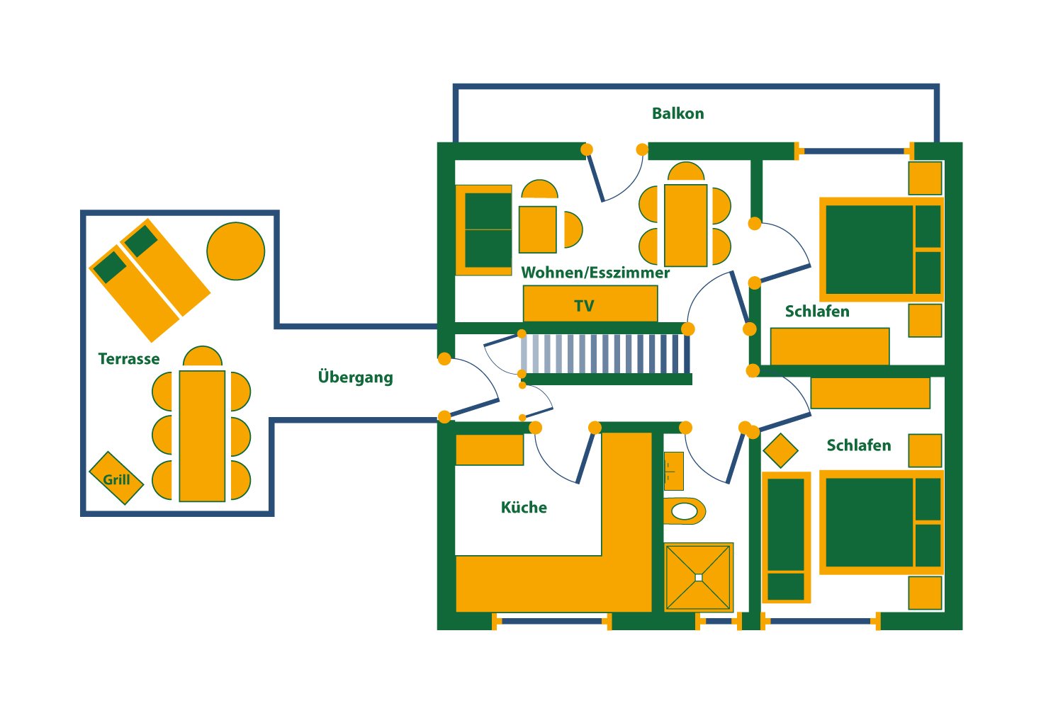 - Insgesamt 160 m², bestehend aus „Haus Am Wald“ und „Appartement Salweyblick“
