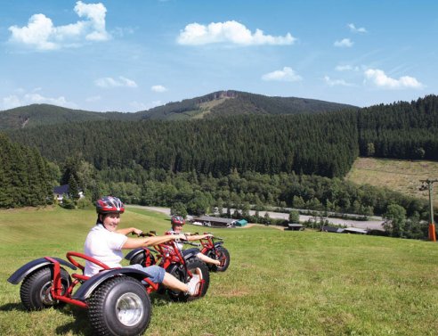 Statt Skiern nutzen Sie fahrbare Untersätze, nämlich Bullcarts, mit denen Sie entweder rasant oder in großen Schwüngen die Abfahrt nehmen. Ein großer Spaß für die ganze Familie oder für Gruppen. Von Mai bis Oktober an jedem Wochenende.