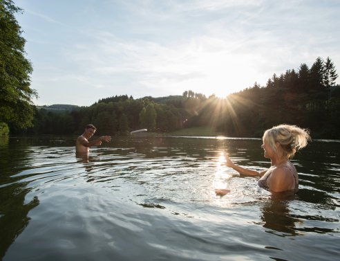 Ein kleiner, aber feiner, etwa 300 m langer Badesee in wunderschöner Umgebung erwartet Sie. Entspannen Sie auf der großen Liegewiese oder durchqueren Sie den See mit ein paar Schwimmzügen. Empfehlenswert ist außerdem der Rundweg, der Sie in etwa einem Kilometer einmal rund um den See führt. Eine kleine Stärkung gibt es am Kiosk oberhalb des Sees und im Sommer wacht der DLRG über die Sicherheit der Badegäste.