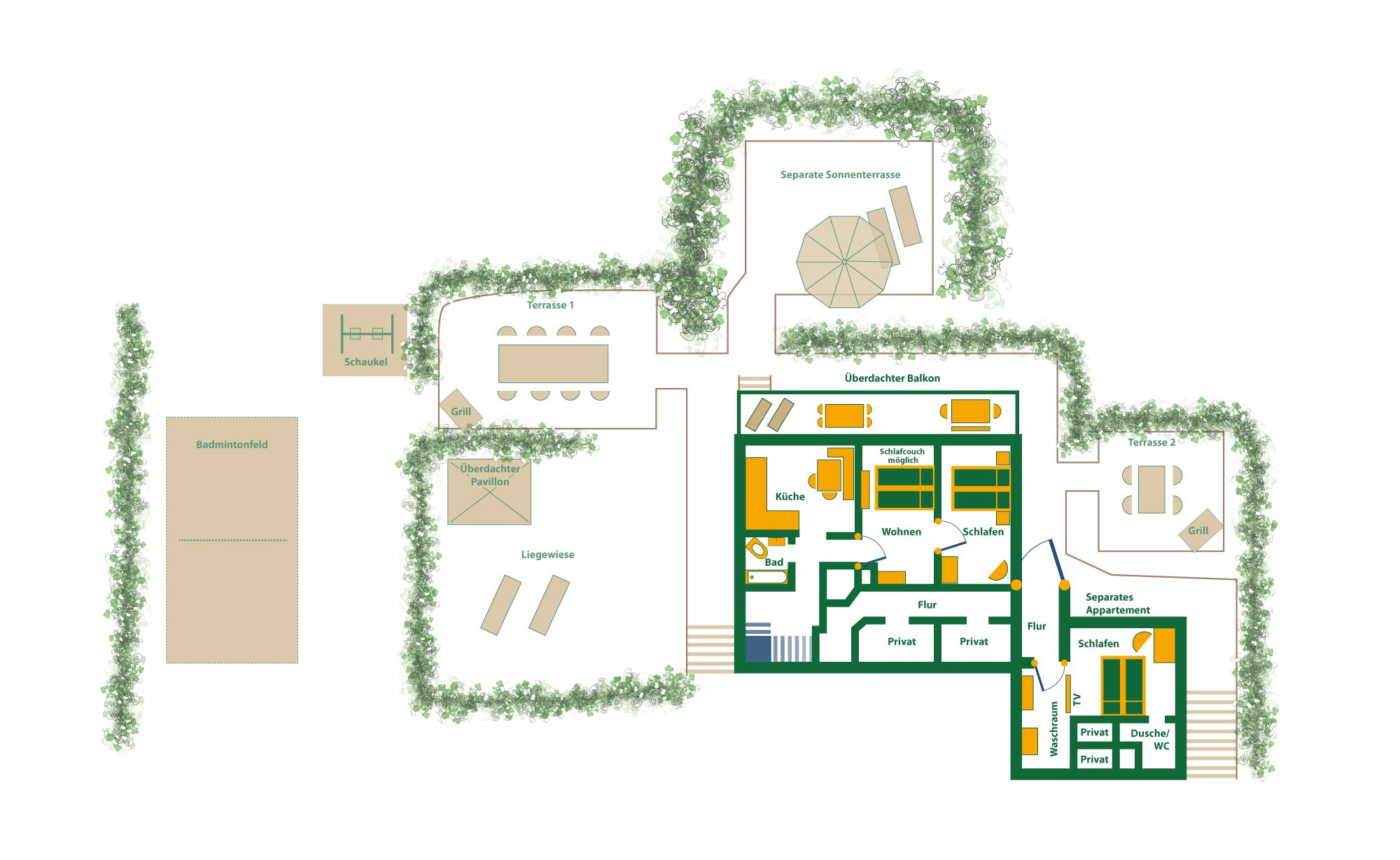 Das Landhaus Mettenberg bietet vor allen Dingen reichlich Platz innen und außen mit einer absolut hochwertigen und modernen Ausstattung. Genießen Sie Ihren Urlaub auf einer der großen Terrassen mit Sonnenliegen oder den beiden geräumigen, überdachten Balkonen mit Blick in das Salweytal. Alternativ relaxen Sie im eigenen Saunabereich oder nehmen in dem hellen, gemütlichen Wohn- Essraum Platz. Auf großzügigen 280 m² verteilt befinden sich 7 Schlafzimmer ( zwei davon als Familienzimmer mit zusätzlichen Schlafcouchen), 2 Küchen, 2 Bäder und 2 Duschen mit WC.